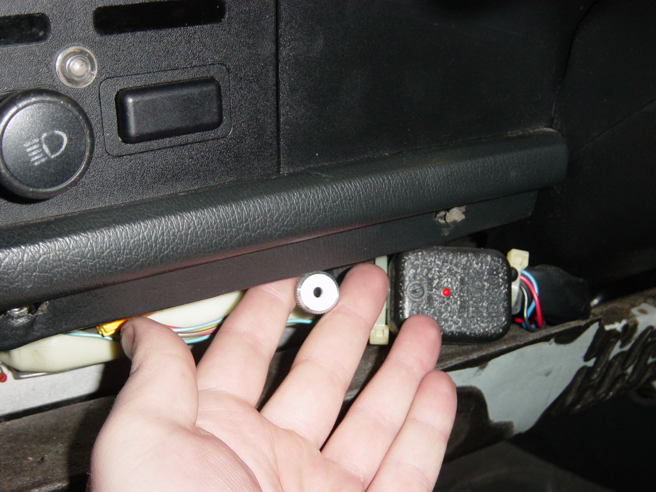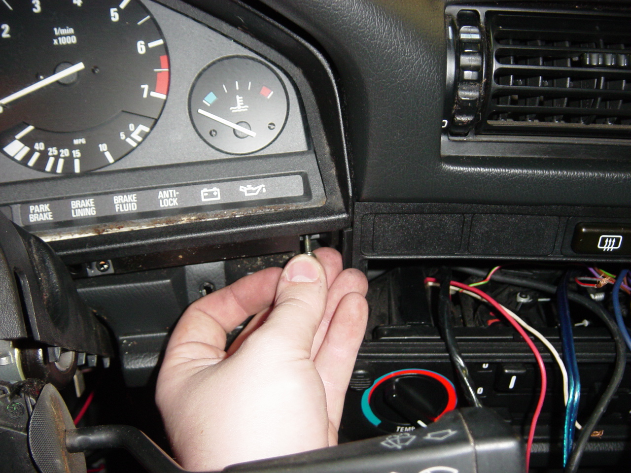 With the trim around the dash console removed, the dash console