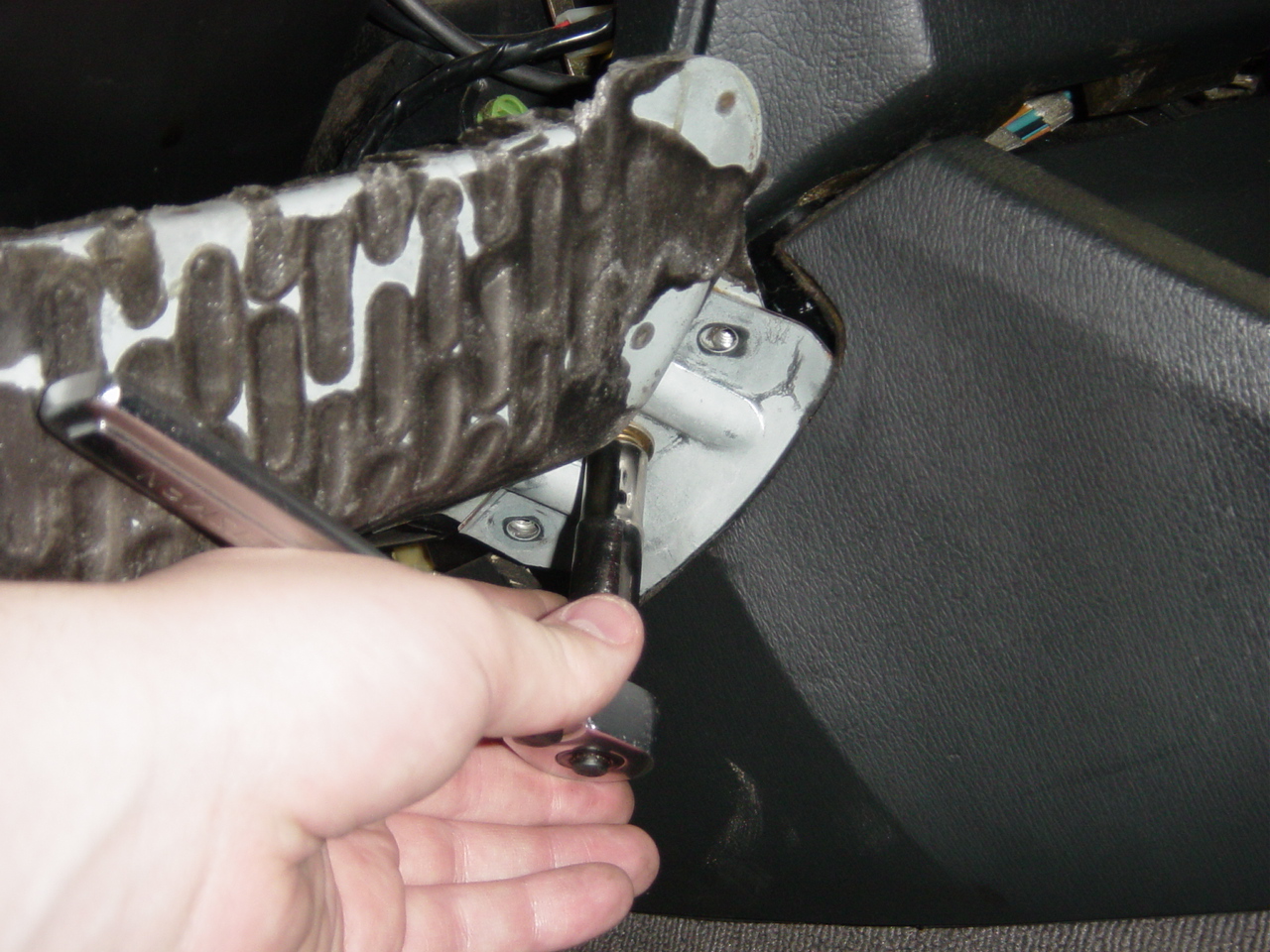 Remove the screws holding the panel in that is above the pedals.
