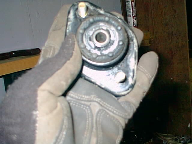 Now is a good time to put in some new rear shock mounts. They are relatively inexpensive and the design is a weak point in the rear suspension. If you start hearing a clunking noise from the rear end of your car, chances are that your rear shock mounts have failed. The rear shock mount is the piece or rubber that holds the end of the shock into the car. They do take a beating. The stock E30 RMS is awful. The E30 convertible RSM is a bit beefier than the standard one. The RMS got a bit better with the E36 and even a bit better in the Z3 when a reinforcement plate was introduced. The E46 RSMs are currently the best ones to use. They are all interchangeable. I purchased the RSM kit from EAP4Parts.com with my shocks and springs. They came with E46 rear shock mounts, gaskets, Z3 rein forcer plates, and nuts. I highly recommend using the E46 rear shock mounts. Aftermarket companies sell rear shock mounts with urethane bushings that are much harder than even the E46 RSM but the aftermarket ones exhibit more noise and vibration. I think the E46 ones are the best compromise, but for people who don't care about noise, stiffness, and vibrations, check out the aftermarket ones.