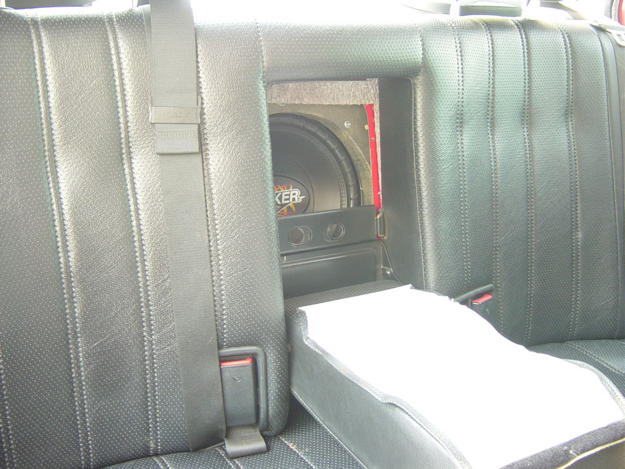 One of the major reasons I wanted the rear seat with the arm rest was to allow the bass from the 12" sub woofer I mounted in the ski hole pop out carry into the cabin. See my stereo install page for more information on how I mounted the sub woofer. The old, solid foam rear seat with no arm rest really attenuated the bass. The difference is dramatic! |