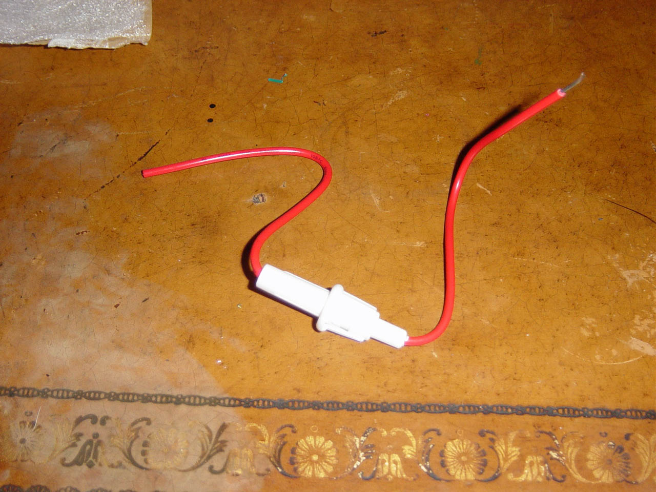Hold up the power cord that came with the V1, putting the side with the locking clip upright. Look at the color of wires inside the connector. Now find the half of the telephone cord you just cut that has the same color sequence. The color sequence from left to right is black, red, green, and yellow. The red wire will be 12V and the green will be ground.
