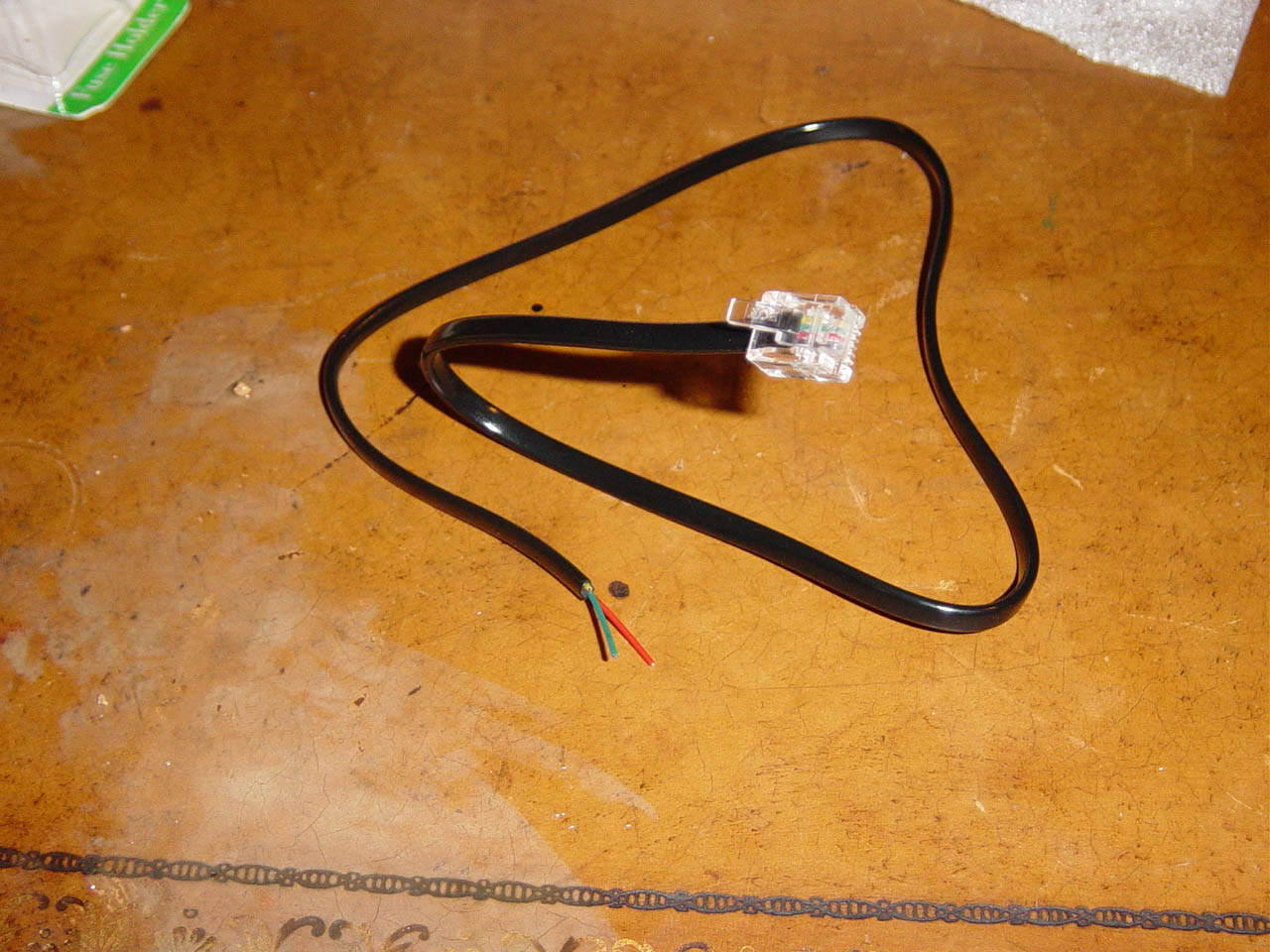 Now that you have a 12V source and ground, get a normal telephone cord. I went to radio shack and bought one that was black to match my car interior. The RJ-11 telephone connector is the same as what the V1 uses.