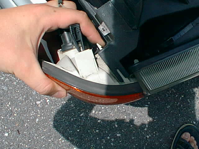Take the amber corners off. They are only held on with a plastic tab.